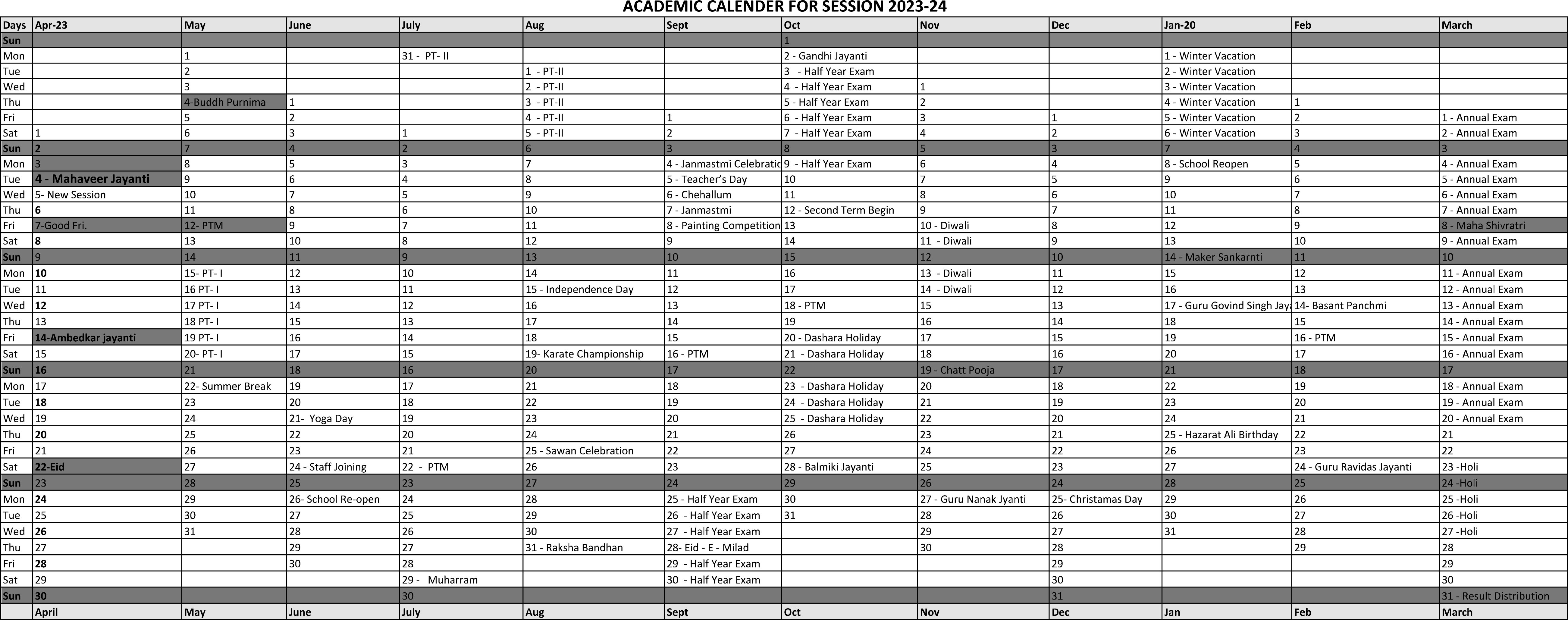 Academic Calender