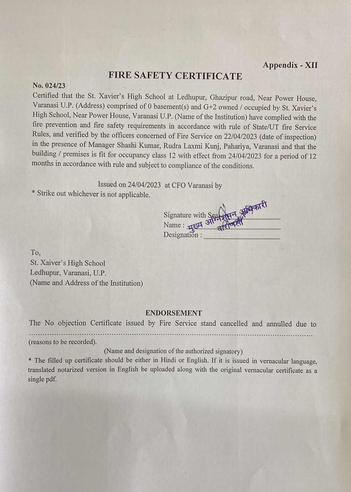 Fire Safety Certificate